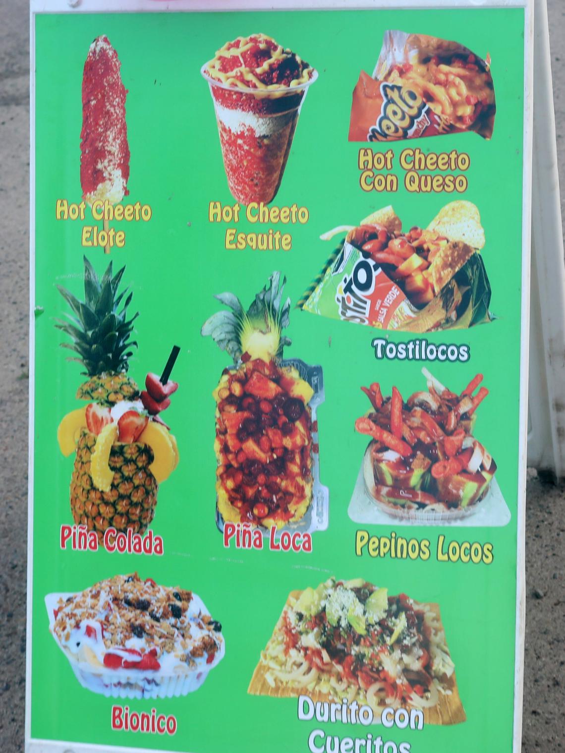 El segundo bocadillo más popular, los tostilocos, es una bolsa de tostadas Tostitos o Takis con jícama, pepino, harina de maíz, cacahuates, mango, dulces y chamoy.