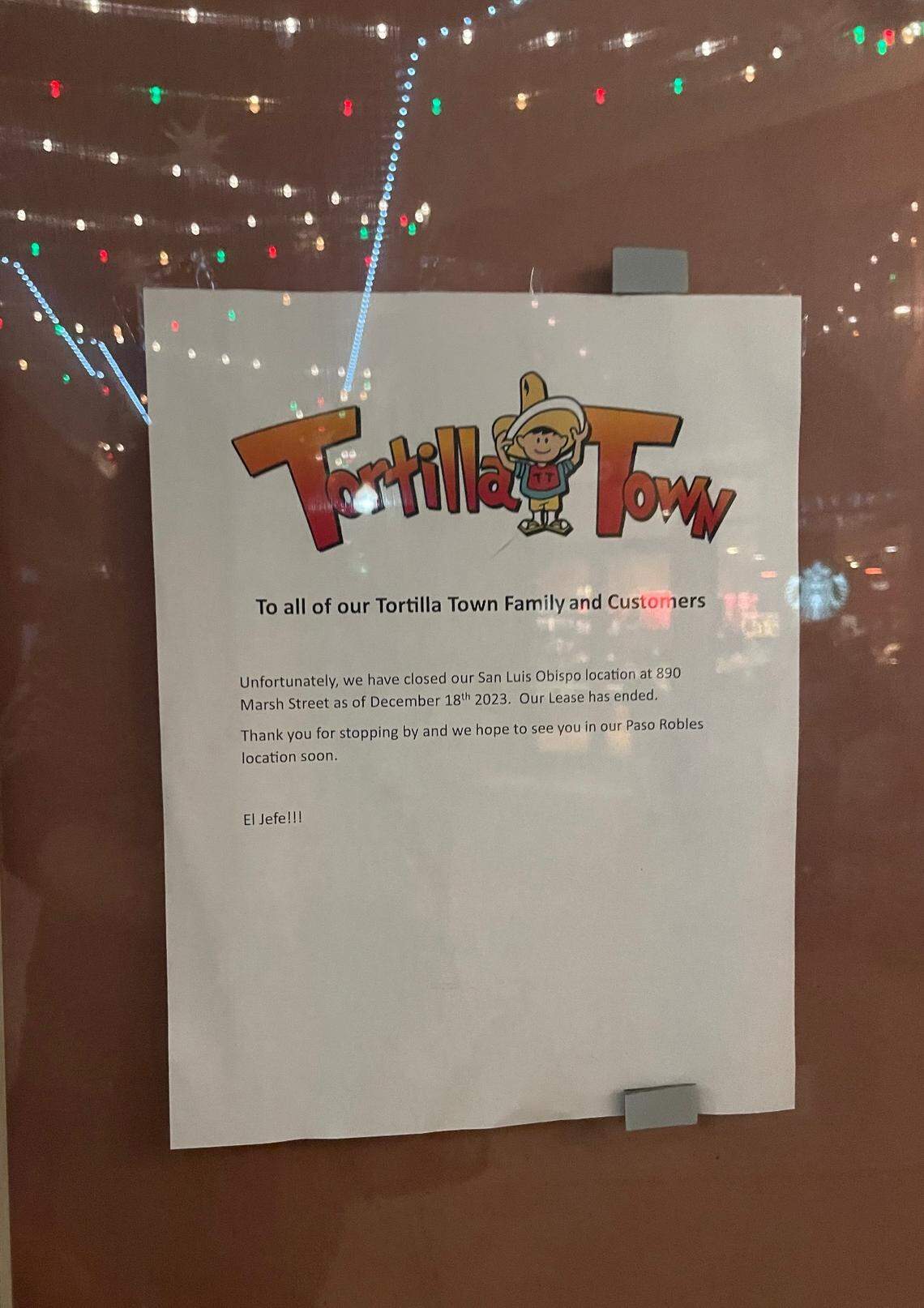 Tortilla Town in downtown San Luis Obispo has closed permanently.