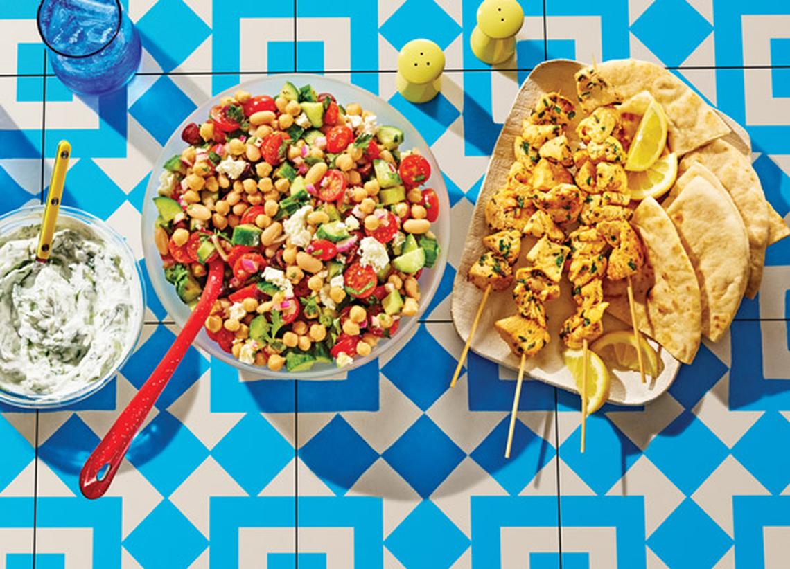 - Top with tzatziki sauce and serve with chicken skewers, if desired.