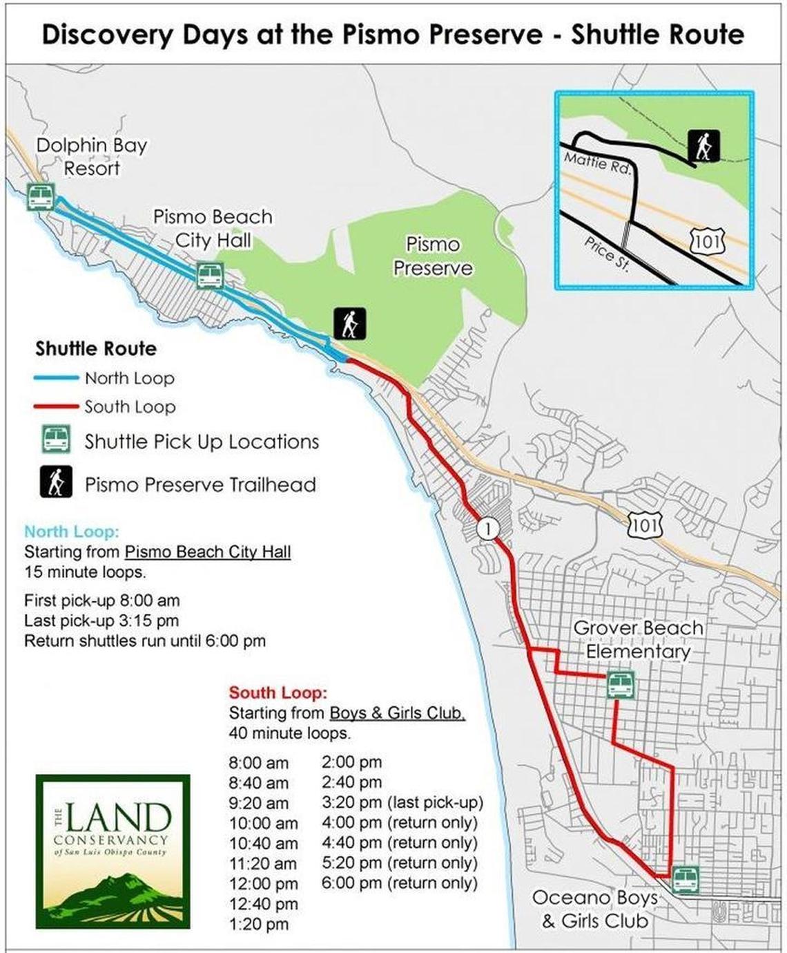 The first Discovery Days are scheduled for June 10 and 25, from 8 a.m. to 6 p.m.; interested visitors can access the trails via a free shuttle service with stops in Pismo Beach and Oceano (for a full shuttle stop list, visit the Land Conservancy website).