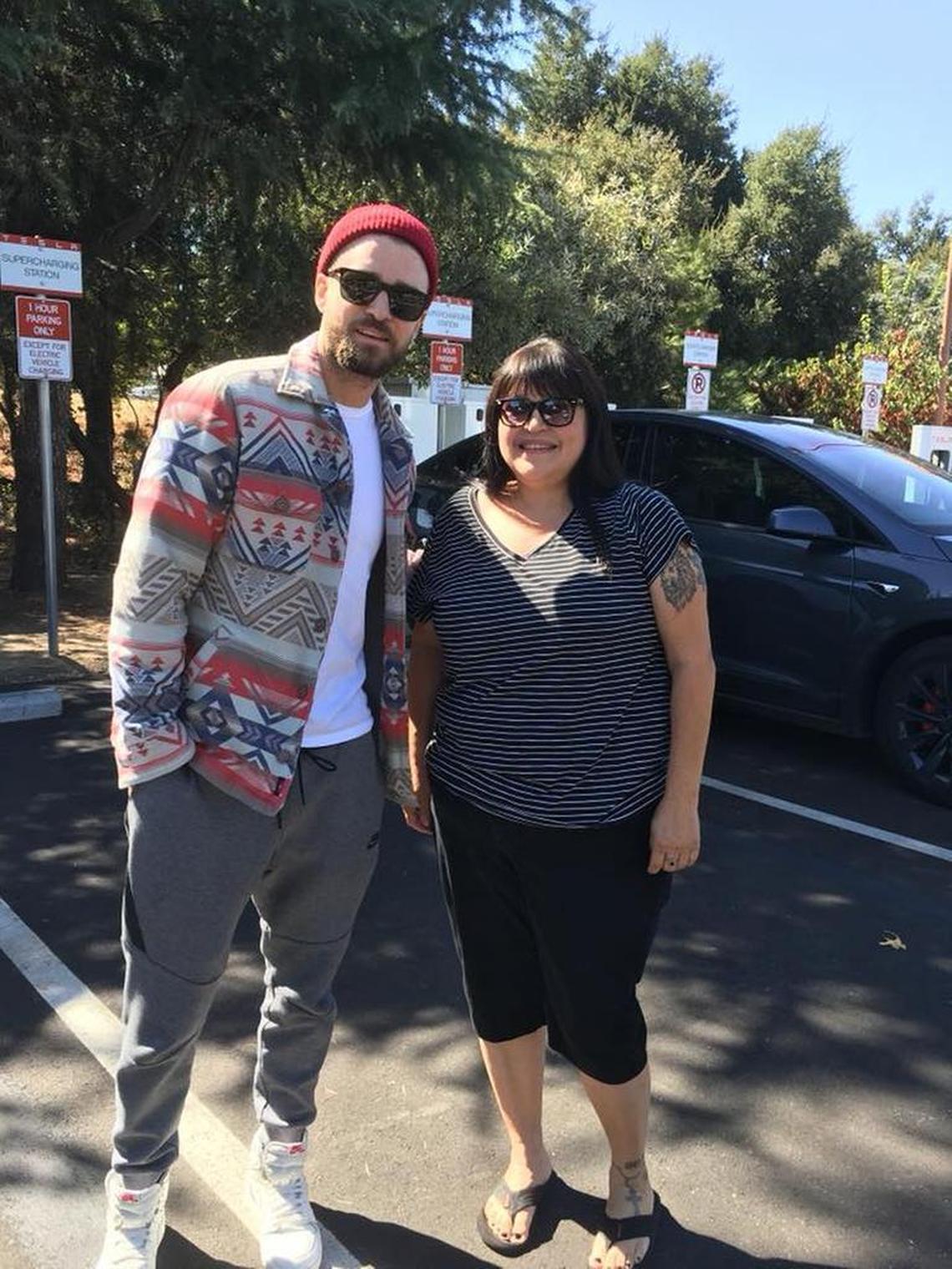 Atascadero resident Maureen De Leon saw Timberlake at the Tesla charging station down the street from the Starbucks and asked for a photo with the celebrity.