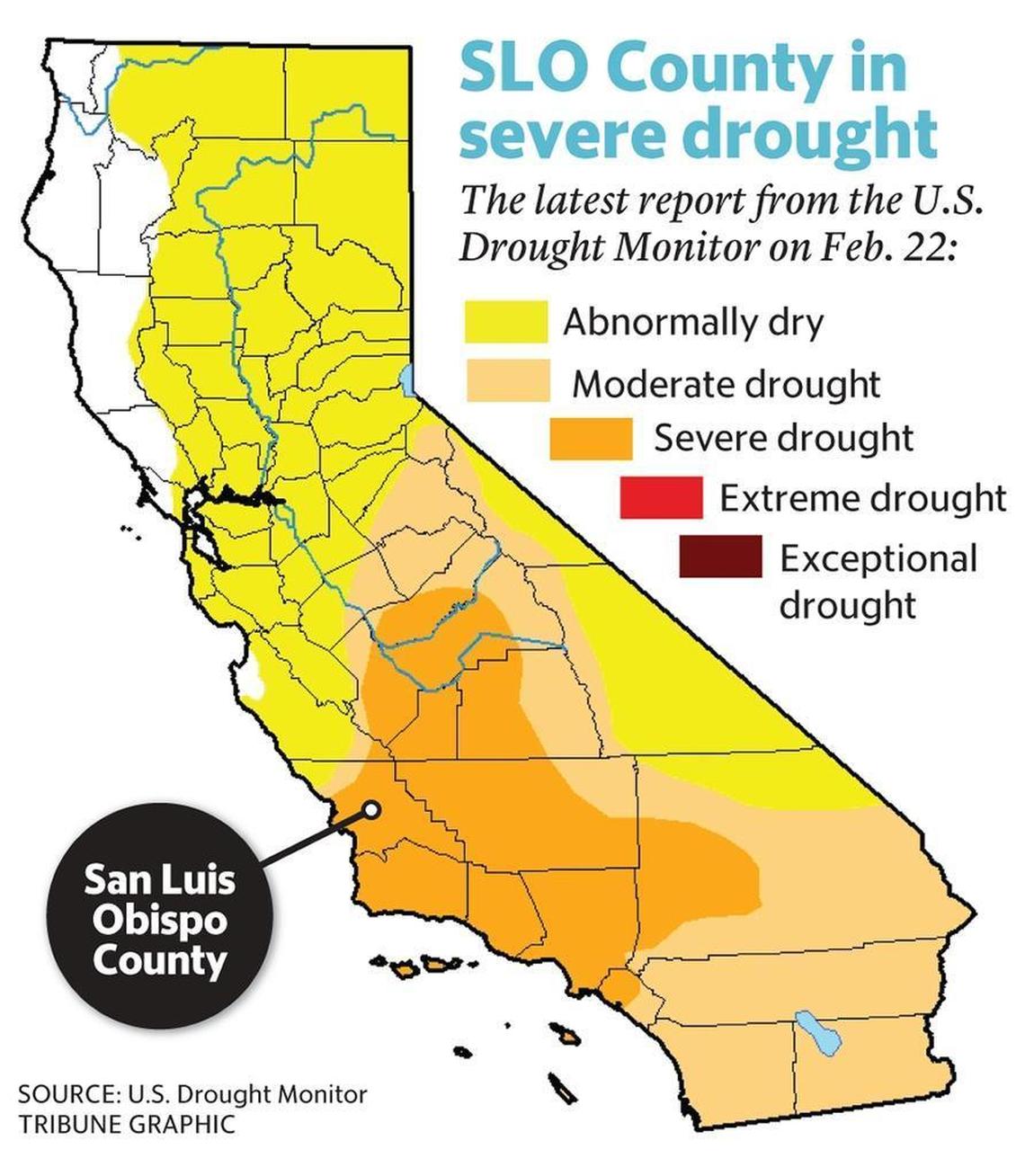 As of Feb. 22, most of the county had slipped back into severe drought conditions, according to the U.S. Drought Monitor. As a result, the region’s reservoirs are all down from this time last year, with some losing substantially more water than others.